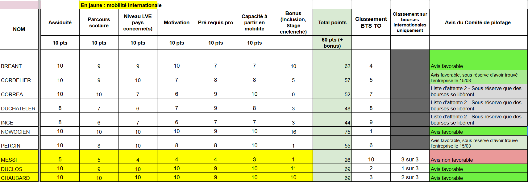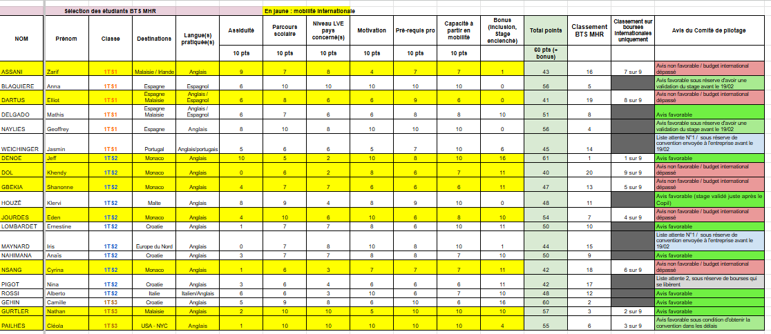- Le COPIL a dû départager les candidats sur l’international en fonction de leur classement général mais aussi de leur classement parmi les candidatures “Internationales”